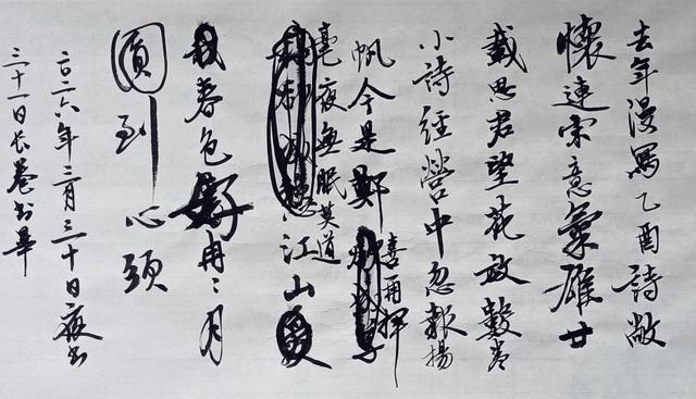 就在3月30日晚为《双丙敞怀诗卷》而创作的跋尾,《欣闻国共两党官宣,郑丽文4月7如一即将访陆,夜不能寐草草成篇,以为双丙敞怀长卷跋尾》诗,从“去年漫写双乙诗”到“冉冉月圆看心头”配资可靠炒股配资门户,从“廿载思君”到“喜再挥毫”,既有历史的厚重,又有郑丽文即将访陆的新闻信息,这正是笔不空谈,文无臆造的书卷气在书法创作中从心底的流过。
