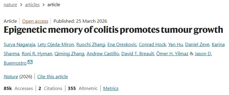 [1] Nagaraja, S., Ojeda-Miron, L., Zhang, R. et al. Epigenetic memory of colitis promotes tumour growth. Nature (2026).doi:10.1038/s41586-026-10258-4