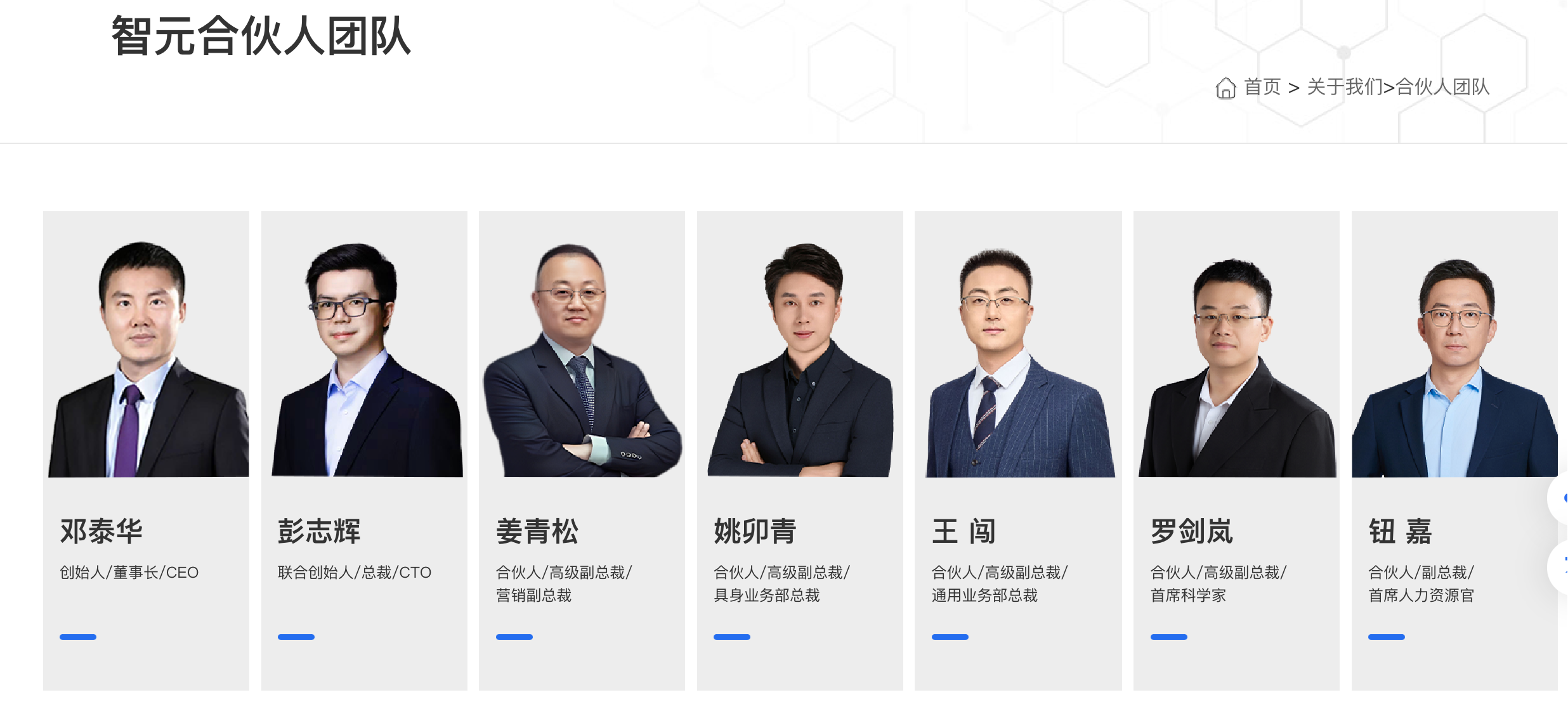 【大河财立方消息】9月19日消息,智元机器人官网披露的合伙人团队名单显示,邓泰华为创始人、董事长、CEO,彭志辉为联合创始人、总裁、CTO。